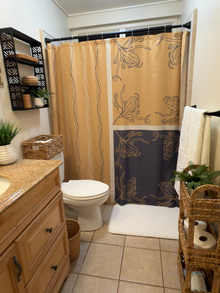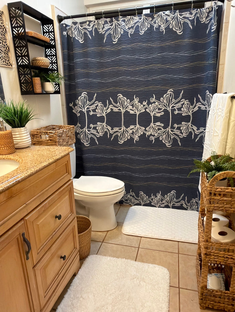 This collection brings together the colors of the Pacific — warm sunrise golds, coastal blues, midnight ocean tones, and shimmering ember sunsets — creating a calming island atmosphere in any home. Designed for modern spaces that love culture, elegance, and story-driven décor, these curtains transform your bathroom into a peaceful Pacific retreat.