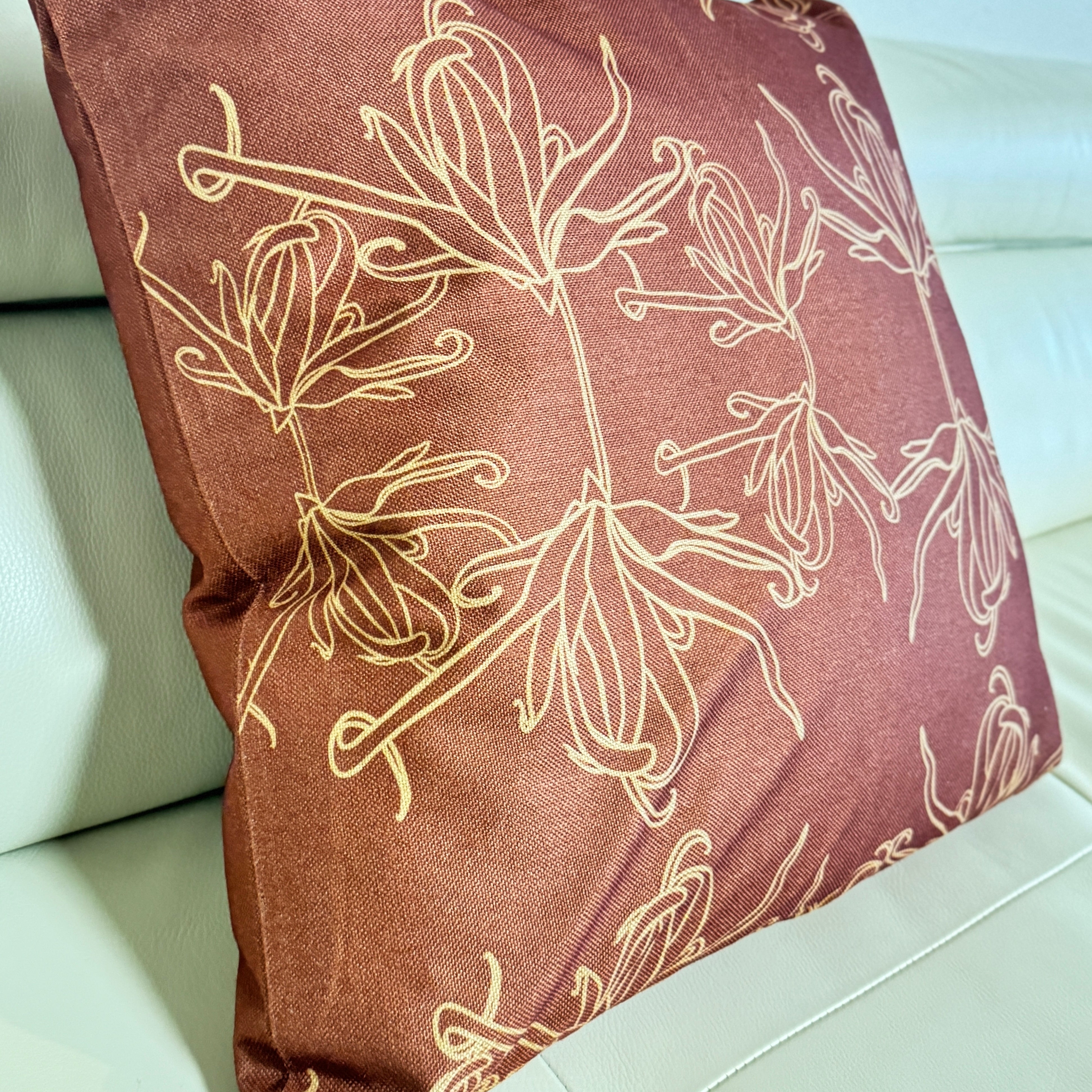 Celebrate the special moments before dawn with the Moso‘oi Golden Hour pillow. Featuring bronze Moso‘oi flowers on a rich sienna backdrop, this design honors the traditional palolo harvest and the glow of early morning light, bringing island-inspired meaning and warmth to your space.