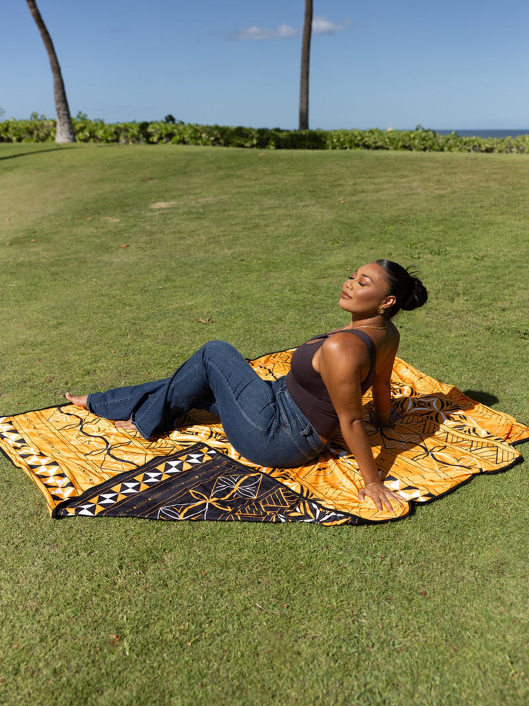 As always Polynesian Bnb delivers .Absolutely beautiful prints and quality products. The picnic mat is convenient to carry and the fabric is easy to clean, grass and sand shake right off . Love this mat !