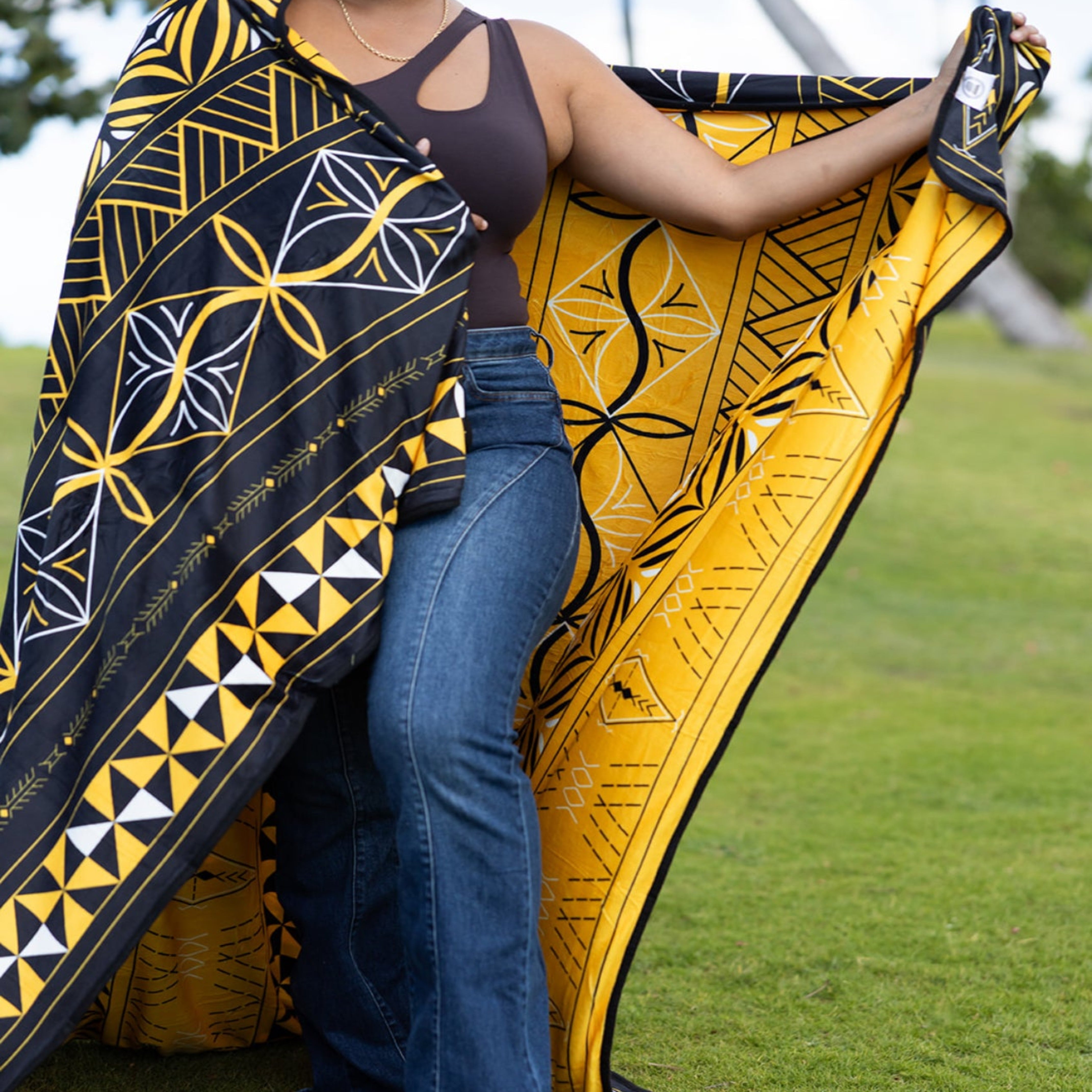 Reversible Blanket. BLACK-YELLOW-WHITE