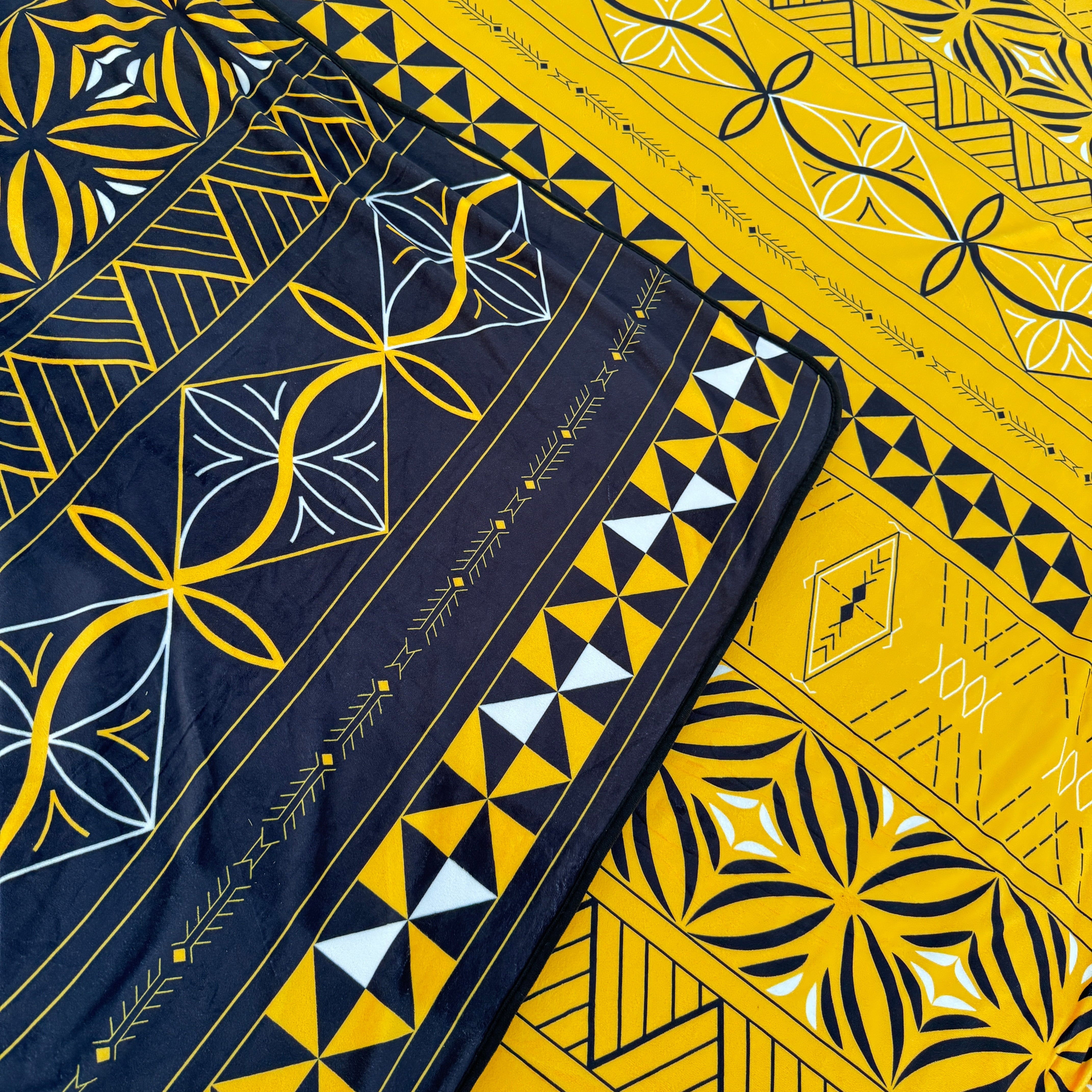 Crafted from a refined blend of breathable fibers with a gentle, soothing weight, it offers a luxurious feel that invites rest and ease. Each side reveals a distinct composition—modern in form, yet rooted in Polynesian-inspired motifs that speak to origin, resilience, and protection.