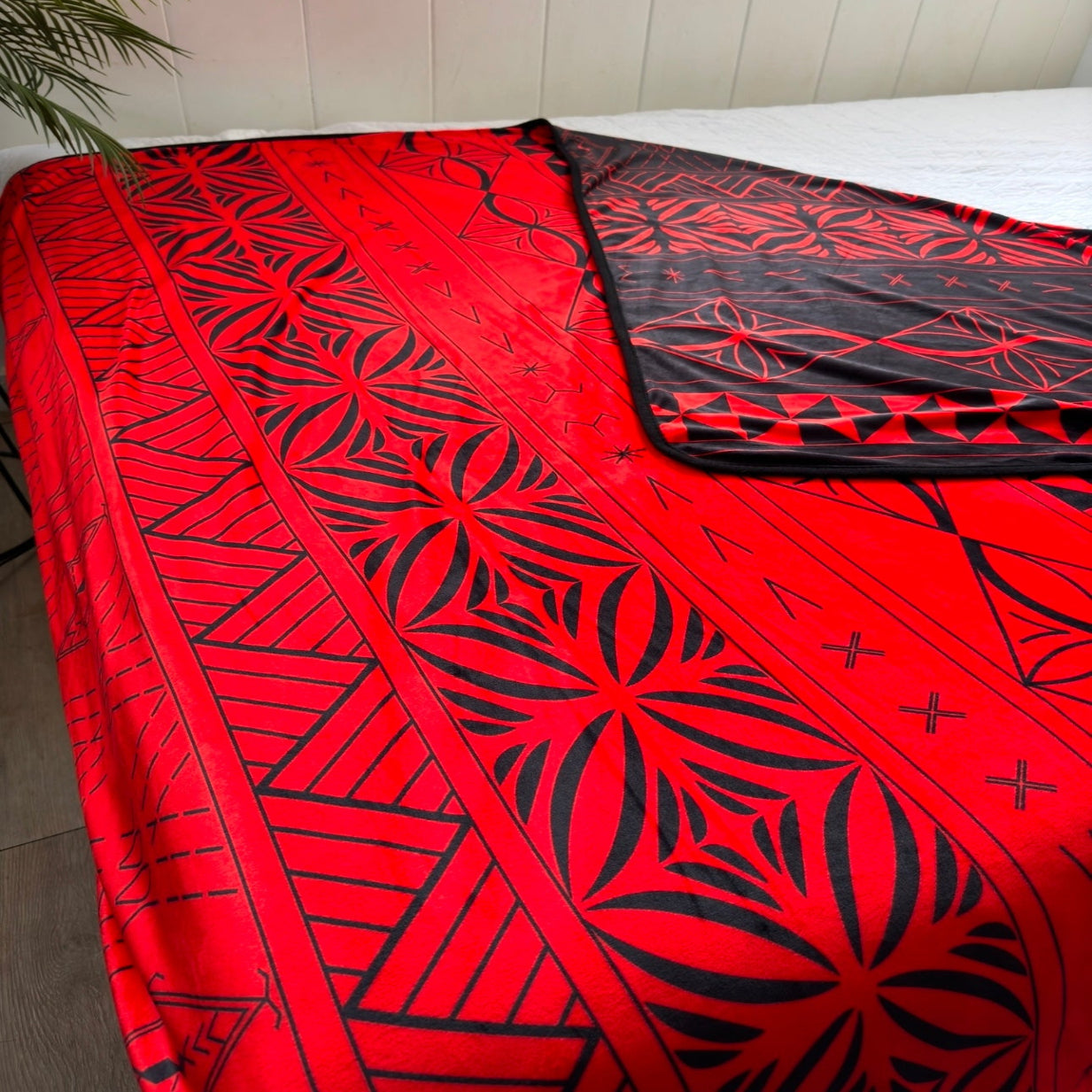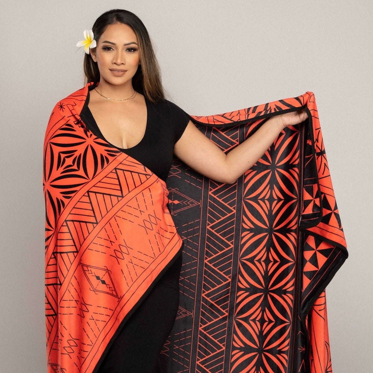 Crafted from a refined blend of breathable fibers with a gentle, soothing weight, it offers a luxurious feel that invites rest and ease. Each side reveals a distinct composition—modern in form, yet rooted in Polynesian-inspired motifs that speak to origin, resilience, and protection.