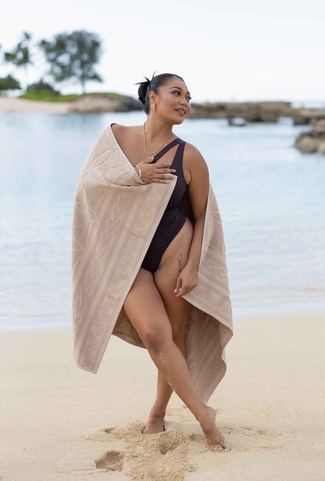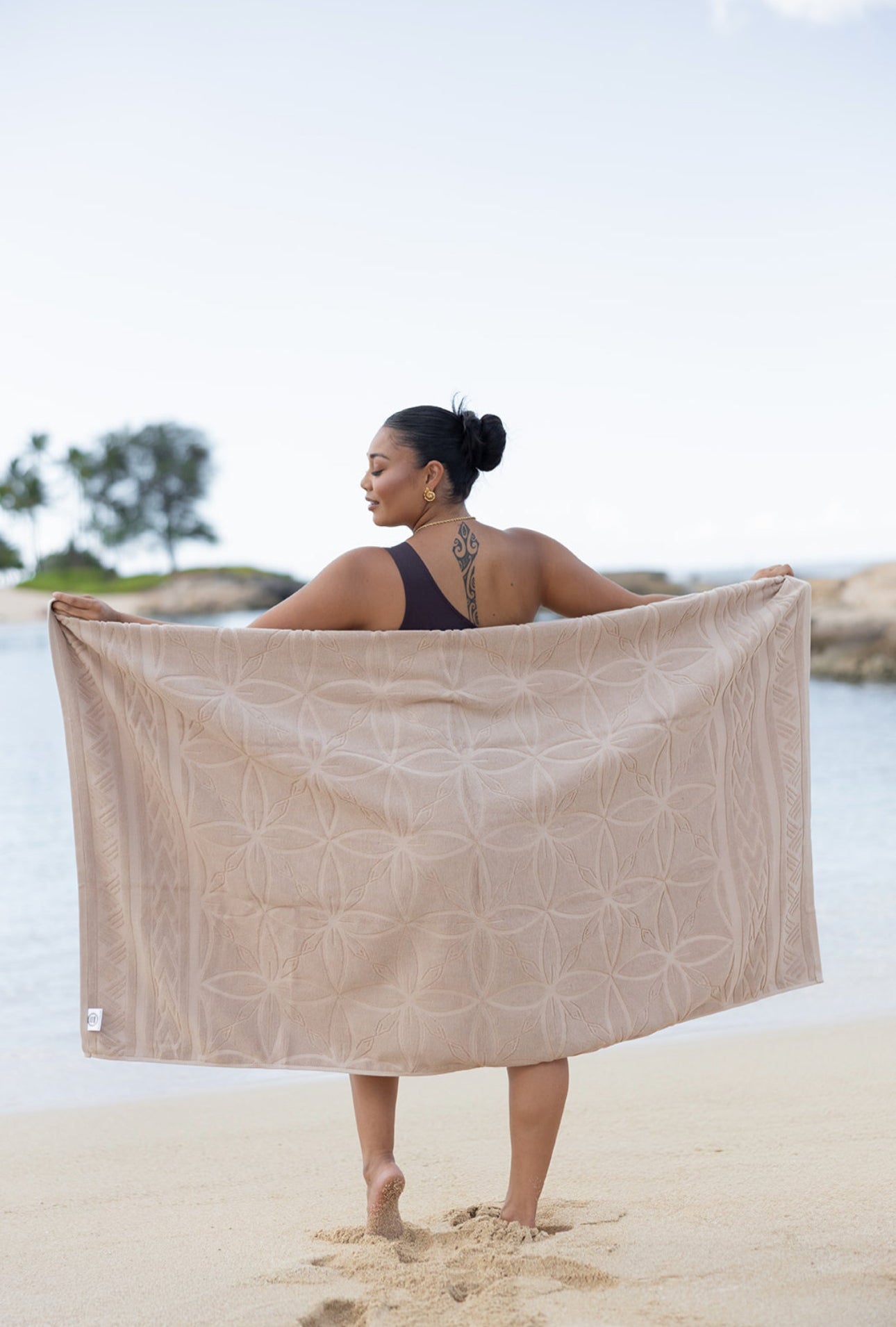 The Pasefika embossed oversized towel combines style and functionality. It’s made with soft, absorbent material and features an intricate Polynesian design on both sides, giving it a luxurious and premium look. The oversized dimensions make it perfect for drying off after a swim, lounging at the beach, or wrapping up at home. Lightweight and durable, quick to dry, making it a great companion for home, travel, workouts, or relaxing by the pool.
