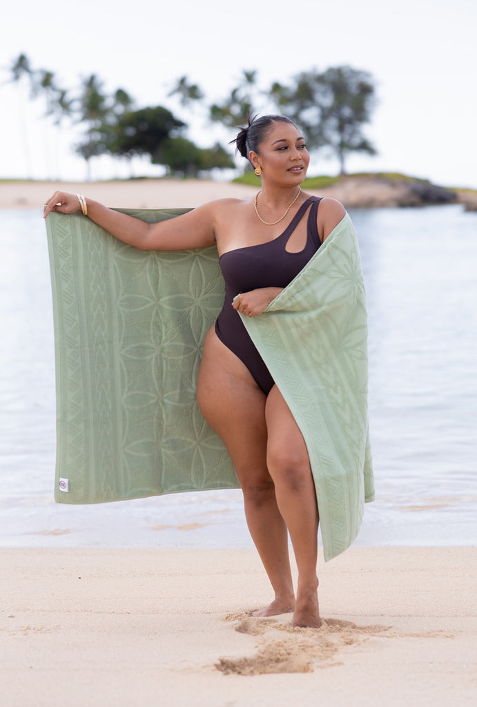 The Pasefika embossed oversized towel combines style and functionality. It’s made with soft, absorbent material and features an intricate Polynesian design on both sides, giving it a luxurious and premium look. The oversized dimensions make it perfect for drying off after a swim, lounging at the beach, or wrapping up at home. Lightweight and durable, quick to dry, making it a great companion for home, travel, workouts, or relaxing by the pool.